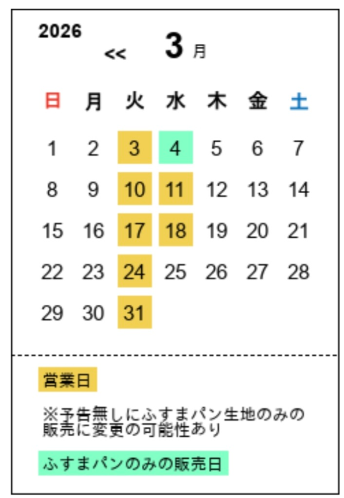 営業予定曜日は火・水曜日(月末の水曜日は休み)です。